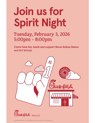 Join us for Spirit Night at Chick-fil-A Vallejo to support Moon Azteca Dance and Art School