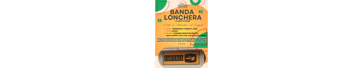 Únete a la Cámara de Comercio Hispana de Solano para "Una Muestra de Colaboración y Apoyo". Nuestro evento Banda Lonchera está diseñado para impulsar a los restaurantes locales mientras brindamos networking y educación de alto valor para nuestros miembros.