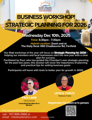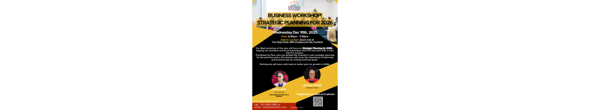 Join us for our final workshop of the year: Strategic Planning for 2026 with facilitator Paul, who has helped guide the Chamber’s own planning for the past two years.