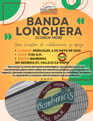 The Solano Hispanic Chamber of Commerce invites you to our upcoming Banda Lonchera (Lunch Mob), a specialized event designed to combine community networking with essential business training.
